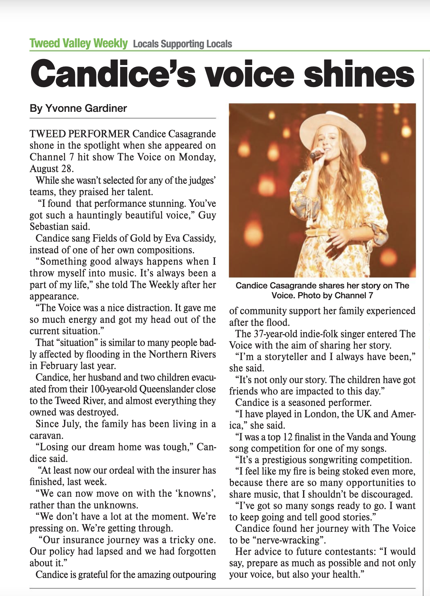 A door opened in one of the hardest years of my life. I felt to walk through it even in the thick of a weighty insurance battle to restore our family home after the February 2022 floods and letting go of our family business. Yes, I sang in the Bind Auditions on The Voice! I got to sing Fields Of Gold by Sting and whilst it wasn’t my time for a chair turn the judges had some very nice things to say and our family was able to shed light on the issues still faced by flood affected communities to this day.